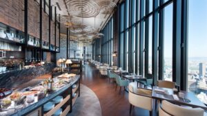 フェスティバルホールの入る「中之島フェスティバルタワー・ウエスト」の最高層階(33〜40階)。まさに**「雲を突き抜けるパノラマビュー」**と、ヒルトングループ最高級ブランドのサービスを誇るのが「コンラッド大阪」です。