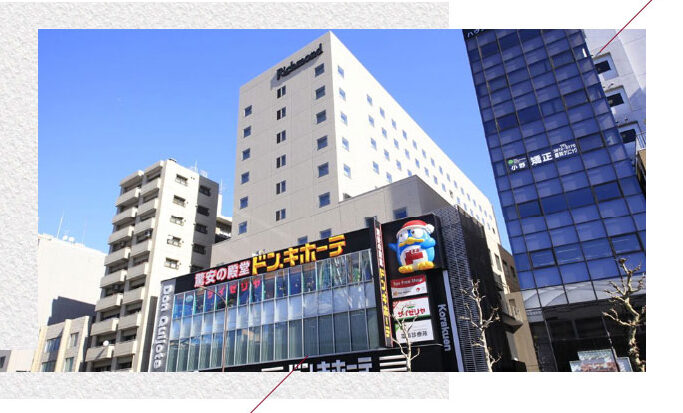 建物1〜4階(フロント階まで)にドン・キホーテが入っています。電池、ペンライト、飲み物、深夜の夜食も24時間手に入ります。